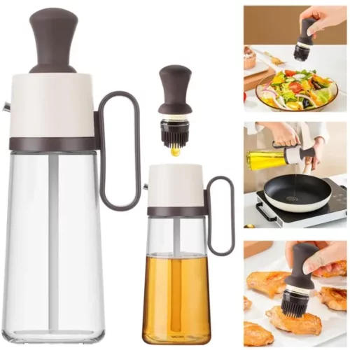 - Design 3 em 1 exclusivo: Diferente das garrafas de dispensador de óleo normal, nosso produto adota um design 3 em 1, com uma cabeça de escova de silicone embutida e bico de aço inoxidável, o que permite que você despeje facilmente óleo, escove óleo e pulverize óleo com ele. Além disso, o design superior do funil pode evitar vazamentos e transbordamentos de óleo, mantendo a garrafa e a mesa limpas após o uso.