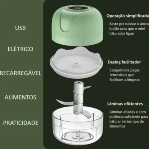 Mini Processador Elétrico de Alimentos Portátil c/ 3 lâminas de Aço Inox USB 250 ml Bivolt